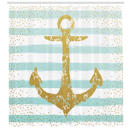 Anchor Decor Shower Curtain Set Nordic Marine Golden Anchor
